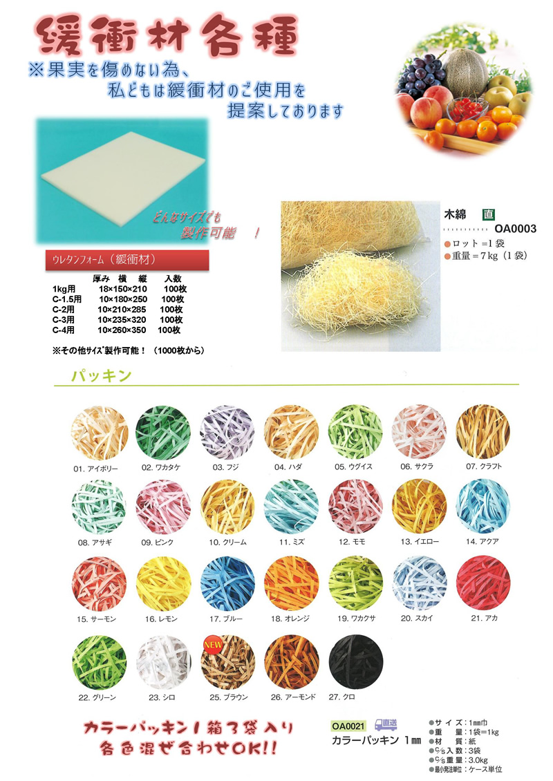 又、果実を傷めない為、私どもは緩衝材のご使用を提案しております。